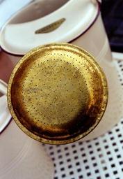 Keywords: watering can metal gold brass garden nature casting water sieve dry rain