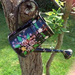Keywords: watering can painting garden equipment design blue summer art colourful flowers