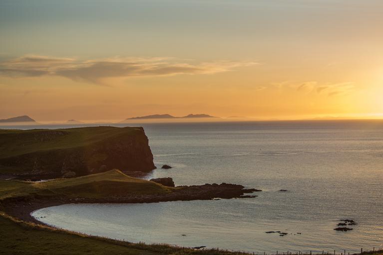 Keywords: waternish trumpan coast sea water smooth romantic sunset social evening evening travel recovery scenic landscape sky dramatic sky cliff stone rest
