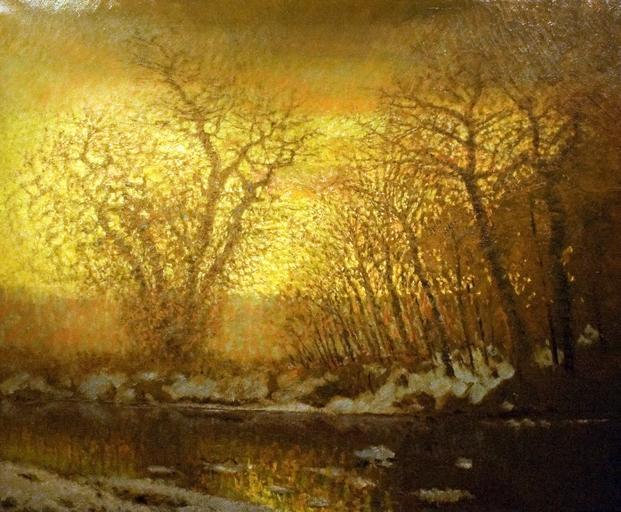Keywords: Waterside Landscape with Snowbreak.jpg Vízparti táj hóolvadáskor en Waterside_Landscape_with_Snowbreak Oil on canvas cm 120 140 Eger Dobó István Castle Museum Eger own ; Photo by Szilas at the exhibition in the Gallery of Judit Virág Budapest ca 1900 Creator László Mednyánszky PD-old-auto 1919 Other versions Landscapes by László Mednyánszky Winter landscape paintings |