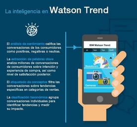 | Keywords: text screenshot La aplicación Watson Trend analiza decenas de millones de conversaciones online en más de 10.000 fuentes, sobre todo en medios sociales, blogs, foros, comentarios o calificaciones. A diferencia de otras aplicaciones que ofrecen una clasificación estática de los productos más de moda, IBM Watson Trend muestra la opinión real de los consumidores respecto a los artículos que han comprado o están pensando comprar. Síguenos a través de Twitter en @IBM_ES, #WatsonTrend, #Watsontelocambio La aplicación Watson Trend analiza decenas de millones de conversaciones online en más de 10.000 fuentes, sobre todo en medios sociales, blogs, foros, comentarios o calificaciones. A diferencia de otras aplicaciones que ofrecen una clasificación estática de los productos más de moda, IBM Watson Trend muestra la opinión real de los consumidores respecto a los artículos que han comprado o están pensando comprar. Síguenos a través de Twitter en @IBM_ES, #WatsonTrend, #Watsontelocambio |