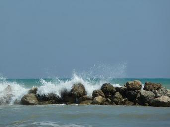 Keywords: wave sea ocean breakwater stones