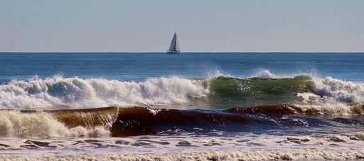 Keywords: wave spray foam farbenspiel sailing vessel sea ocean sail blue sky nature rest relaxation blue sky