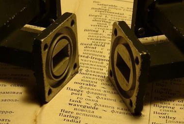 | Keywords: Waveguide-choke-flange-UG-1666-U.jpg en Waveguide choke flange UG-1666/U so that's on WG18 and is aluminium and matching gasket/cover flange This is a composite picture because these flanges are on opposite ends of the same device a Moreno crossguide coupler and I didn't want to saw it in half The book is Ю В Катышев Д Л овиков Э А Полфе ов editor В П Дмит иевского «Англо-Русский Слова ь по уско ителям за яженных частиц» The E-plane cross-section of the assembled joint is shown in File Waveguide-choke-flange-cross-section svg own Catslash 2009-07-25 Waveguide flanges |