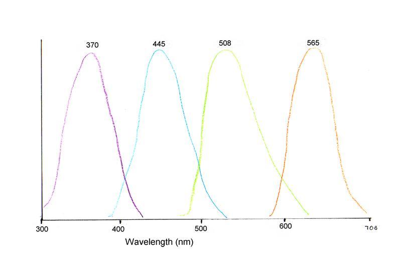 Keywords: Wavelengthtetra.png en tetrachromic vision of birds Own Jimfbleak 2008-07-15 Bird visual system