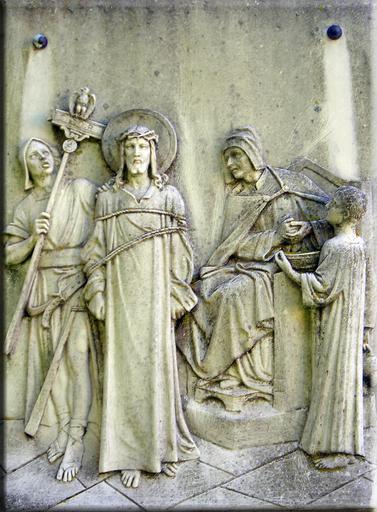 Keywords: way of the cross christian church easter procession stone chiseled crucifixion plate sicily suffering christ