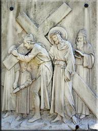 Keywords: way of the cross christian church easter procession stone chiseled crucifixion plate sicily suffering christ