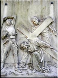 Keywords: way of the cross christian church easter procession stone chiseled crucifixion plate sicily suffering christ italy
