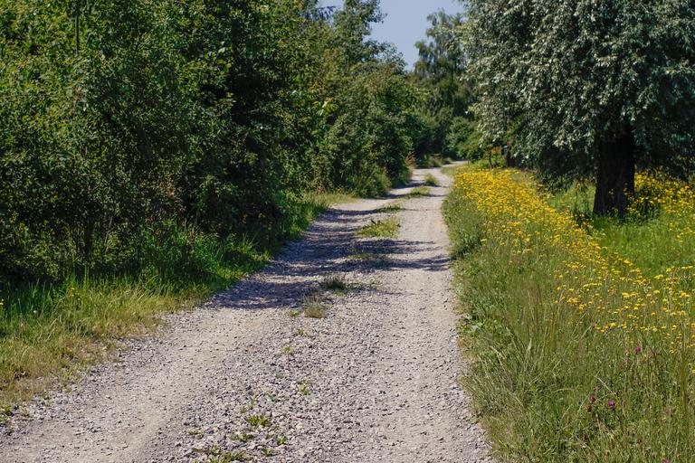 Keywords: way tree flowers shoulder dirt road sunny day summer landscape poland malopolska