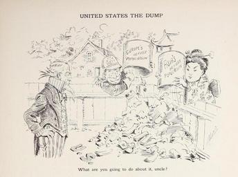 | Keywords: WCMorris Spokesman-Review cartoons 075.jpg en Title United States the Dump Cartoon depicting personifications of Europe a military officer wearing a German pickelhaube and Asia a woman in a kimono emptying garbage cans labeled Europe's refuse population and Asia's refuse population into a trash heap on Uncle Sam's yard representing the United States Caption What are you going to do about it Uncle circa 1906 “ 1908 cite book Spokesman-Review Cartoons William Charles Morris 1908 Spokane WA Review Publishing Company https //archive org/details/spokesmanreviewc00morr Creator William Charles Morris other versions PD-old-70-1923 Spokesman-Review Cartoons 1908 Immigration in the United States Immigration in art |