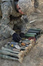 | Keywords: Weapons Cache Found Near Forward Operating Base Warhorse DVIDS141025.jpg en U S Air Force Senior Airman Matthew Curvey places high explosives on a weapons cache in preparation for their destruction U S Soldiers from the Chemical Biological Radiation Nuclear/ Weapons Intelligence Team Platoon Brigade Troops Battalion 1st Stryker Brigade Combat Team 25th Infantry Division are exploiting a weapons cache found by 25th Infantry Division Soldiers while conducting a patrol south of Baqubah Iraq on Jan 3 2009-01-03 https //www dvidshub net/image/141025 090103-N-+++++-030 2009-01-05 11 49 BAQUBAH IQ PD-USGov-Military-Navy Forward Operating Base Warhorse 25th Infantry Division United States Images from DoD uploaded by Fæ |
