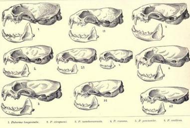 | Keywords: Weaselskulls.png Skulls of various North American weasel species Skulls marked 1 3 and 5 are Mustela frenata skulls marked 2 and 6 are Mustela erminea and skulls marked 4 are Mustela nivalis Synopsis of the weasels of North America 1896 Merriam C Hart Clinton Hart 1855-1942 PD-old Mustela frenata skulls Mustela erminea skulls Mustela nivalis skulls Clinton Hart Merriam |