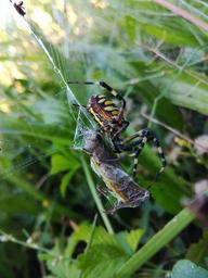 Keywords: web macro grass nature striped toxic crusader striped food insect grasshopper