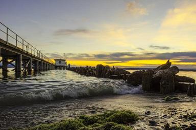 Keywords: web sea lake surf sunset blue hour water pier beach boardwalk ocean atmosphere wave wide rest anlegstelle port jetty bank mood
