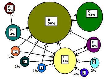 | Keywords: Websites interlinking to illustrate PageRank percents.png en Diagram to illustrate concept of PageRank continued Google uses complex mathematical algorithms to guess which websites a user seeks Since website B is the recipient of numerous inbound links it ranks more highly in a web search And the links carry through such that website C even though it only has one inbound link has an inbound link from a highly popular site website B Note percentages are rounded 2012-04-02 own Tomwsulcer cc-zero Uploaded with UploadWizard Diagrams PageRank |