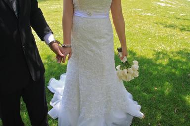 Keywords: wed cuffed husband wife bouquet relationship commitment event love