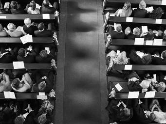 Keywords: wedding black and white top church from above architecture ceremony singing bride groom outlook gang romantic impressive light and shadow personal human guests