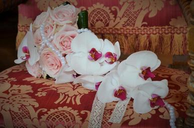 Keywords: wedding bouquet romanticism flowers white purity wedding photo pink commitment bride love i love you floral composition beads color pink plant happiness florist flowering bouquet wedding orchid