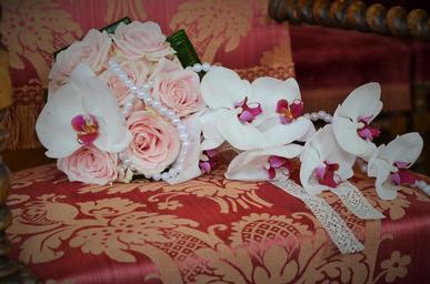 Keywords: wedding bouquet romanticism flowers white purity wedding photo pink commitment bride love i love you floral composition beads color pink plant happiness florist flowering bouquet wedding orchid