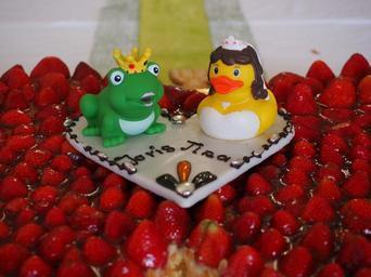 Keywords: wedding cake frog prince frog king princess strawberry cake strawberries joris tina bride duck