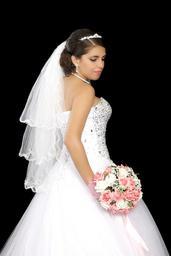 Keywords: wedding couple wedding dress veil love romance romantic newlyweds kiss bride event white ceremony marriage nuptials