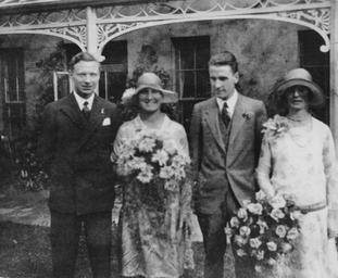 | Keywords: lse london school of economics londonschoolofeconomics lse library lselibrary men women four standing outdoors bride groom bouquet hat 1927 fashion corsage students student life studentlife wedding marriage blunson hall blunsonhall elizabeth pearson elizabethpearson george mackenzie georgemackenzie 1920s blackandwhite monochrome black and white Left to right: Blunson Hall, Elizabeth's sister, George Mackenzie (LSE student 1919-1923), Elizabeth Pearson (LSE Student 1920-1923), the couple were both joint secretaries of the Students Union IMAGELIBRARY/931 Persistent URL: archives.lse.ac.uk/dserve.exe?dsqServer=lib-4.lse.ac.uk&a... Left to right: Blunson Hall, Elizabeth's sister, George Mackenzie (LSE student 1919-1923), Elizabeth Pearson (LSE Student 1920-1923), the couple were both joint secretaries of the Students Union IMAGELIBRARY/931 Persistent URL: archives.lse.ac.uk/dserve.exe?dsqServer=lib-4.lse.ac.uk&a... |