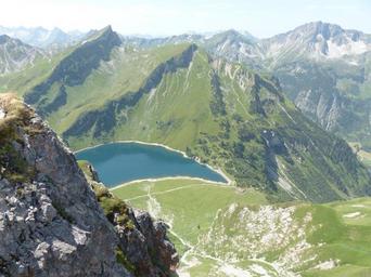 Keywords: wedding mountain lake lake bergsee reservoir top wedding alpe hut mountain hut red lace hike mountain hike hiking more mountains alpine trail vilsalpseeberge allgäu alps tyrol austria saalfeld höhenweg excursion day hiking day geierkoepfle