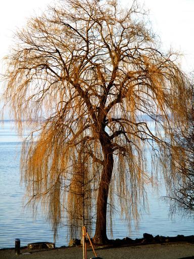 Keywords: weeping willow tree bank lakeside sea route sun golden lake constance rorschach switzerland