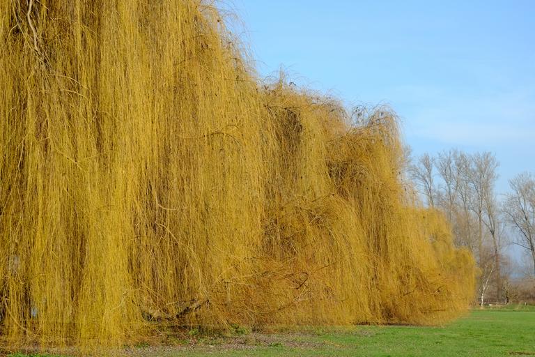 Keywords: weeping willows trees pasture salix babylonica salicaceae landscape depend grazing greenhouse autumn bank lakeside hanging branches branch park niederrhein gold