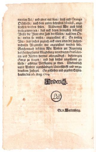 | Keywords: Wegweiser Erlass 2.jpg Erlass über die Aufstellung von Wegeweisern im Herzogtum Magdeburg S 2 von 3 Scan eines Exemplars des Museums für Verkehr und Technik Berlin Archiv MVT II 50 nach Wolfgang Lotz Hrsg Deutsche Postgeschichte Essays und Bilder Berlin 1989 ISBN 3-87584-249-9 S 370 “371 See s de Erlass über die Aufstellung von Wegweisern im Herzogtum Magdeburg Complete scan <gallery> Image Wegweiser_Erlass_1 jpg Page 1 Image Wegweiser_Erlass_2 jpg Page 2 Image Wegweiser_Erlass_3 jpg Page 3 </gallery> PD-old 1704 in Germany History of Halle Saale German Museum of Technology Berlin |