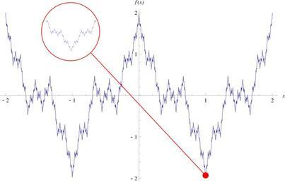 | Keywords: WeierstrassFunction.svg en Plot of the Weierstrass function A section of the plot is zoomed in on to illustrate the fractal nature of the function The plot was generated using Mathematica and exported to SVG I first made a plot of the region and then a plot of a much smaller section around the red point on the image With the use of Inkscape I was able to put the two in the same SVG file This file is an Inkscape SVG not a plain SVG Own Eeyore22 2008-10-26 http //commons wikimedia org/wiki/Image Weierstrass_function gif ValidSVG Weierstrass function |