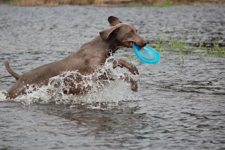 Keywords: weimaraner animal dog snout water wet fur waters animal portrait nature joy of life play great pet race swim