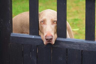 Keywords: weimaraner dog canine looking gate posts pet hunting domestic cute mammal friendly fun portrait head