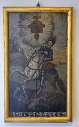 | Keywords: Weingarten Hoftafel St-Georgshof.jpg Hoftafel des St Georgshofs Der Hauspatron beim Drachenkampf darüber das Heilig-Blut-Reliquiar Ölgemälde 1743; mit den Initialen des Lehnsnehmers Georg Eggert <br />Stadtmuseum Weingarten im Schlössle ; aus der Benediktinerabtei Weingarten own own photograph 1743 Photo Andreas Praefcke Stadtmuseum Weingarten 1743 paintings Paintings of Saint George and the Dragon Devotion to the Holy Blood at Weingarten Photos by User AndreasPraefcke | ||||