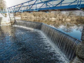 Keywords: weir water river trees bridge