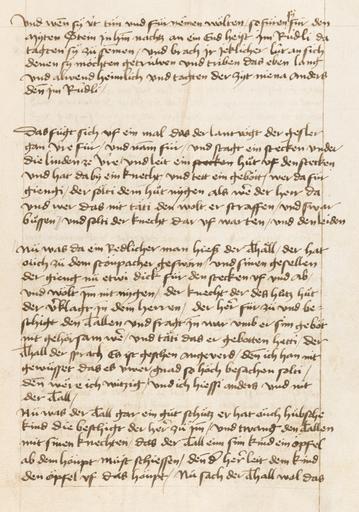 | Keywords: Weisses Buch von Sarnen 447.jpg en p 447 fol ccxi r of the White Book of Sarnen the earliest record of the legend of William Tell Text p 447 Das fügt sich vf ein mal das der landvögt der gesler gan vre für/ vnd namm für/ vnd stagt ein stecken vnder die linden ze vure/ vnd leit ein huot vf den stecken vnd hat da by ein knecht/ vnd tett ein gebött/ wer da für giengi/ der sölti dem huot nygen als were der herr da vnd wer das nit täti den wollt er straffen/ vnd swar buossen/ vnd solti der knecht dar vf warten/ vnd den leiden Nü was da ein redlicher man hiess der Thäll/ der hat oüch zü dem stöupacher gesworn/ vnd sinen gesellen der gieng nü etwi dick für den stecken vf vnd ab/ vnd wält jmm nit nygen/ der knecht der des huotz huot der verklagt jnn dem herren/ der herr für zü vnd beschigt den Tallen vnd fragt jnn war vub er sim geböt nit gehörsam were/ vnd täti das er gebotten hetti/ der Thall der sprach Es ist geschen an geverd denn ich han nit gewüsset das es vwer gnat so höch besachen solti/ denn were ich witzig/ vnd ich hiessi anders vnd nit der Tall/ Nü was der Tall ein güt schütz er hat öuch hübsche kind die beschigt der herr zü jmm/ vnd twang den Tallen mit sinen knechten/ das der Tall eim sim kind ein Öpfel ab dem höupt Müst schiessen/ denn der herr leit dem kind den Öpfel vf das höupt/ Nü sach der Thall wol das p 448 er beherret was/ vnd dam ein pfyl vnd stagt jnn in sin göller den andern pfyl nam er jn ein hand/ vnd spien sin armbrest/ vnd bat göt das er jmm sins kind behüte/ vnd schös dem kind/ den Öpfel ab dem höupt/ Es geviel dem herren wol/ vnd fragt jnn was er da mit meinti/ er antwürt jmm vnd hett es gern jm besten verrett/ der her lies nit ab er wolt wässen was er da mit meinti/ der Tall der sörgt den herren/ vnd sprach/ seg mir die warheit/ jch will dich dins lebens sichren vnd dich nit döden/ dü sprach der Tall sid ir mich gesichret hand/ so wil ich üch die warheit sägen/ vnd ist war hetti mir der schütz gevelt/ das ich misn kind hetti erschössen so wölt ich den pfyl jn vch öder der vwern ein han geschössen/ dü sprach der herr nü hinn ist dem alsö/ so ist war jch han dich gesichret/ das ich dich nit töden wil/ vnd hies jnn binden/ vnd sprach er wölt jnn an ein end legen/ das er Sünnen nach man/ niemer me geseche/ vnd namen jnn die knecht in ein nawen/ vnd leiten sin schies züg vf den hindren biet/ vnd jnn gebünden vnd gefangen/ vnd füren den see ab/ vntz an den achsen/ dü bekam jnnen also starker wint/ das der herr vnd die andern all vörchten sie mästen ertrinken/ dü sprach einer vnder jnnen herr jr send wöl wie es gan will/ Tünd so wol vnd bindent den Tallen vf/ Er ist ein stark man vnd kan oüch wol farn/ vnd heissend jnn das er vns helfe das wir hinnen kömmen/ dü sprach der her wilt dü din best tün/ so wil ich dich vsbinden/ das dü vns allen helfest/ dü sprach der Tal ja herr gern/ vnd ständ an die stüre/ vnd für da hinnvnd lügt allwend da it zu sim schieszüg/ denn der her lies jnn gan vngebünden vnd dü der Tall kam vntz an die/ ze Tellen blatten dü rüft er sy all an vnd sprach das sy all vast zügen kemen sy für die blatten hinn so hetten sy das böss über kön/ also zügen sy all vast/ vnd dü jnn dücht das p 449 Er zü der Blatten kkömen möchti/ dü swang er den Nawen zü hinn/ vnd namm sin schieszüg/ vnd sprang vs dem Nawen vf die blatten/ vnd sties den nawen von jmm/ vnd liess sy swangken/ vf dem se/ vnd lüf dur die berg vs so er vastest möcht/ vnd lüf dür switz hinn schattenhal/ dür die berg vs vntz gan küsnach jn die hölen gass dar was er vär dem herren/ vnd wartet da/ vnd als sy kämen riten/ dü stünd er hinder einer studen vnd spien sin armbrest/ vnd schöss ein pfyl jn den herren/ vnd lüff wider hinder sich jnhinn gan vre/ dürch die Berg jn/ 1474 Weisses Buch von Sarnen S 447 fol 211r ; http //www e-codices unifr ch/de/staow/A02CHR0003/447/0 e-codices unifr ch author other versions PD-old-100-1923 15th-century manuscripts Switzerland in the 1470s Wilhelm Tell |