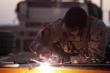| Keywords: Welding Warrior (8498722856).jpg Lance Cpl Josue M Zamora a metal worker with Engineer Support Company 2nd Combat Engineer Battalion cuts sheets of metal in the main staging area for units supporting Operation Dynamic Partnership in Shurakay Helmand province Afghanistan Feb 9 2013 Dynamic Partnership was a multi-unit operation to retrograde all U S military equipment and personnel from Shurakay district U S Marine Corps photo by Cpl Alejandro Pena https //www flickr com/photos/marine_corps/8498722856/ Welding Warrior 2013-02-09 17 58 https //www flickr com/people/40927340 N03 Marines from Arlington VA United States PD-USGov United States Marine Corps Official Page https //flickr com/photos/40927340 N03/8498722856 2016-09-03 22 51 56 United States Government Work Construction Flame Goggles Light Spark Sparks Tan Yellow Amphibious forces International Security Assistance Force Metals North Atlantic Treaty Organization |