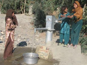 | Keywords: Well Project Brings Water to Afghan Villages DVIDS136892.jpg en Afghan girls draw water from a recently completed village well in the Kuz Konar District of Afghanistan's Nangarhar province The Nangarhar Provincial Reconstruction Team has completed an eight-well project that will bring a vital water source to thousands of people in six districts 2008-12-17 https //www dvidshub net/image/136892 136892 2008-12-17 11 12 KABUL AF PD-USGov Nangarhar Province Girls of Afghanistan Images from DoD uploaded by Fæ |