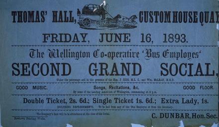 | Keywords: text document writing sign outdoor Arrangement of text. Inscriptions: Inscribed - Recto - bottom left: Newtown Printing Works. Quantity: 1 colour photo-mechanical print(s). Physical Description: Letterpress, black on blue, 240 x 420 mm. Newtown Printing Works. Wellington Co-operative Bus Employes' [sic] second grand social, Thomas' Hall, Friday June 16, 1893.. Ref: Eph-C-RECREATION-1893-01. Alexander Turnbull Library, Wellington, New Zealand. natlib.govt.nz/records/23138518 Arrangement of text. Inscriptions: Inscribed - Recto - bottom left: Newtown Printing Works. Quantity: 1 colour photo-mechanical print(s). Physical Description: Letterpress, black on blue, 240 x 420 mm. Newtown Printing Works. Wellington Co-operative Bus Employes' [sic] second grand social, Thomas' Hall, Friday June 16, 1893.. Ref: Eph-C-RECREATION-1893-01. Alexander Turnbull Library, Wellington, New Zealand. natlib.govt.nz/records/23138518 |