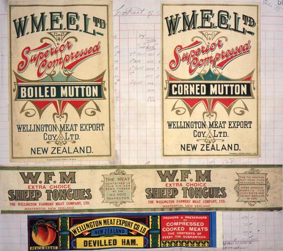 | Keywords: text sign writing Each label is an arrangement of text. The bottom label also carries a logo of a peach. Lithographer of two top labels is Turnbull, Hickson & Gooder. Quantity: 4 colour art print(s) on labels.. Physical Description: Chromolithographs, on labels, 187 x 121 mm (2 of this size); 60 x 340 mm; and, 45 x 232 mm. Provenance: Deposited by Gear Meat Company in 1981. Turnbull, Hickson & Gooder, Ltd.. Wellington Meat Export Company Ltd :[Three labels for Boiled mutton; Corned mutton; Devilled ham; and Wellington Farmers' Meat Company Ltd. [Label for] Sheep tongues. 1890-1920].. Gear Meat Company :Scrapbook of labels. 1890s-1920s].. Ref: Eph-F-MEAT-Gear-050. Alexander Turnbull Library, Wellington, New Zealand. natlib.govt.nz/records/22468982 Each label is an arrangement of text. The bottom label also carries a logo of a peach. Lithographer of two top labels is Turnbull, Hickson & Gooder. Quantity: 4 colour art print(s) on labels.. Physical Description: Chromolithographs, on labels, 187 x 121 mm (2 of this size); 60 x 340 mm; and, 45 x 232 mm. Provenance: Deposited by Gear Meat Company in 1981. Turnbull, Hickson & Gooder, Ltd.. Wellington Meat Export Company Ltd :[Three labels for Boiled mutton; Corned mutton; Devilled ham; and Wellington Farmers' Meat Company Ltd. [Label for] Sheep tongues. 1890-1920].. Gear Meat Company :Scrapbook of labels. 1890s-1920s].. Ref: Eph-F-MEAT-Gear-050. Alexander Turnbull Library, Wellington, New Zealand. natlib.govt.nz/records/22468982 |