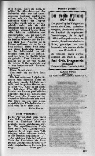 Keywords: Weltbuehne 1926 II 555.jpg Weltbuehne_1926_ jpg II_554 II_556 Die Weltbühne Jahrgang 22 own scan 1926 Creator Kurt Tucholsky De Wikisource book leaflet Kurt Tucholsky Weltbühne PD-old