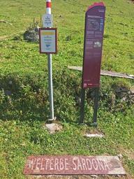 | Keywords: WelterbeSardona Fronalp.jpg en Informational sign of World Heritage Site Sardona in Switzerland at Mittler Stafel close to Fronalpstock de Informationsschild über Welterbe Tektonikarena Sardona auf Mittler Stafel unterhalb Fronalpstock own Albinfo 2016-09-12 Ennenda Glarner Hauptüberschiebung World Heritage Site signs Hiking and footpath signs in the canton of Glarus Fronalpstock Glarus Cc-zero | ||||