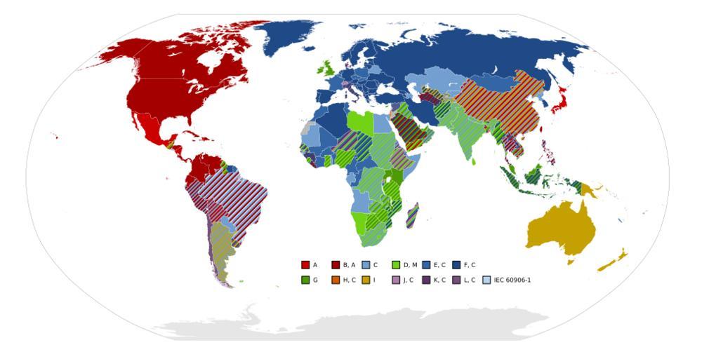 | Keywords: Weltkarte verwendeter Netzsteckertypen.svg de Länder der Welt mit farblicher Darstellung der hauptsächlich verwendeten Netzsteckertypen en Countries of the world coloured according to the main plug types in use eo La landoj de la mondo kun koloroj laŭ siaj uzataj tipoj de elektraj kontaktingoj fr Les pays du monde colorée selon les types de prises principales en service nl Landen wereldwijd met kleurcodes voor de gebruikte netstekker soorten pl Kraje świata kolorami zaznaczone rodzaje gniazd elektrycznych w użyciu ru Ст аны ми а обозначенные цветом в соответствии с используемыми в них типами вилок es Países del mundo del color correspondiente al tipo más común de enchufe utilizado BlankMap-World6 svg Based on information from en Mains electricity by country and especially for continental europe de Länderübersicht Steckertypen Netzspannungen und -frequenzen SomnusDe 2009-12-18 Mains connectors Electricity maps |