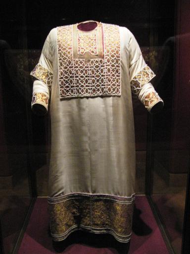 | Keywords: Weltliche Schatzkammer Wien (164).JPG Die Alba Palermo königliche Hofwerkstatt 1181 mit späteren Ergänzungen Seide Golddrahtstickerei Perlen Smaragde Saphire Amethyst Spinell Granat Opal 154 cm hoch am Saum 127 cm breit SK Inv -Nr XIII 7 The Alb Palermo Royal Court Workshop 1181 With later additions Silk gold embroidery pearls emeralds sapphires amethyst spinel garnet opal 154 cm high 127 cm wide at the hem SK Inv No XIII 7 Own 2007-10 MyName Gryffindor Alb of the Holy Roman Empire Secular and Ecclesiastical Treasury |