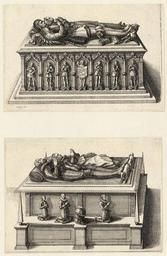 | Keywords: Wenceslas Hollar - Two tombs.jpg 2217 P2392A Two tombs 28 × 19 cm Architecture > Tombs and Monuments Unidentified possibly Lichfield Cathedral Drawings of sculptures Medieval church monuments in England Prints by Wenzel Hollar Renaissance church monuments in England |