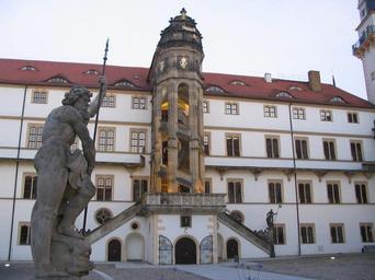 Keywords: Wendelstein Hartenfels.JPG Großer Wendelstein Treppenturm von Schloss Hartenfels Torgau Beleuchtet foto by myself 16 08 2005 GFDL Cc-by-sa-3 0-migrated Wendelstein im Schloss Hartenfels Torgau