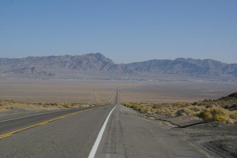 Keywords: wendover route nevada street road highway freeway lane endless straight asphalt flat plain mountain range horizon transport travle road trip