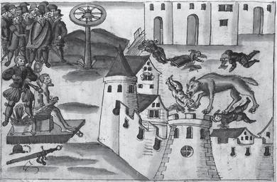 | Keywords: Werewolf in Geneva (1580).png In Geneva a man killed 16 children when he had changed himself into a wolf; he was executed on 15 October 1580 Coloured pen drawing Johann Jakob Wick Sammlung von Nachrichten zur Zeitgeschichte aus den Jahren 1560 1587 ms F 29 fol 167v From the Zentral Bibliothek ZΓΌrich Π ΠΠ΅Π½Π΅Π²Π΅ ΠΌΡΠΆΡΠΈΠ½Π° ΡΠΊΠΎΠ±Ρ ΡΠ±ΠΈΠ» ΠΏΡ Π΅Π²Ρ Π°ΡΠΈΠ²ΡΠΈΡΡ Π² Π²ΠΎΠ»ΠΊΠ° 16 Π΄Π΅ΡΠ΅ΠΉ; ΠΎΠ½ Π±ΡΠ» ΠΊΠ°Π·Π½ΡΠ½ 15 ΠΎΠΊΡΡΠ±Ρ Ρ 1580 Π³ΠΎΠ΄Π° Π ΠΈΡΡΠ½ΠΎΠΊ ΠΈΠ· ΡΠ°ΠΊ Π½Π°Π·ΡΠ²Π°Π΅ΠΌΠΎΠΉ ΠΠΈΠΊΠΈΠ°Π½Ρ - ΡΠΎΠ±Ρ Π°Π½ΠΈΡ ΠΏΠ°ΡΡΠΎΡ Π° ΡΡΡ ΠΈΡ