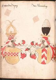 | Keywords: Wernigeroder Wappenbuch 128.jpg žWernigeroder Schaffhausensches Wappenbuch ; Süddeutschland 4 Viertel 15 Jh <br />Bayerische Staatsbibliothek München Cod icon 308 n<br /> von Neuenburg http //daten digitale-sammlungen de/~db/0004/bsb00043104/images/ circa 1475 “1500 anonymous PD-old Wernigeroder Wappenbuch Chequy gules and argent Chevrons in the Wernigeroder Wappenbuch Coats of arms of Neuenburg family 1 fess chequy in heraldry | ||||