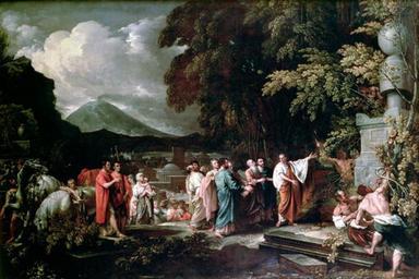 | Keywords: West, Benjamin - Cicero and the magistrates discovering the tomb of Archimedes.JPG Artwork Creator Benjamin West 1797 Technique 124 5 x 180 5 private collection accession number object history credit line http //www math nyu edu/~crorres/Archimedes/Tomb/TombIllus html Archimedean miscellanea ” Tomb of Archimedes and http //www bridgemanart com/image aspx key Cicero 20and 20the 20magistrates 20discovering 20the 20tomb 20of 20Archimedes filter CBPOIHV thumb x150 num 15 page 1 img 3fafd7ede169441f9dd16a44fa8a04bf Bridgeman Art Library Bridgeman Art Library http //www bridgemanartondemand com/art/100917/Cicero_and_the_magistrates_discovering_the_tomb_of_Archimedes www bridgemanartondemand com West painted a similar painting oil on canvas 125 73 x 182 245 with the same title in 1804 which is part of the collection of Yale University Art Gallery since 1963 <small> not on display as of 2009-06-01 </small> <sup>http //ecatalogue art yale edu/detail htm objectId 53032 www yale edu</sup> PD-old-100 Ancient history and myths paintings by Benjamin West Cicero and the magistrates Graves in art Paintings of people Archimedes in art Cicero 1797 paintings Syrakousai in art Mount Etna in art 18th-century oil on canvas paintings 18th-century paintings in unidentified private collections Uploads by Mattes from external sources |